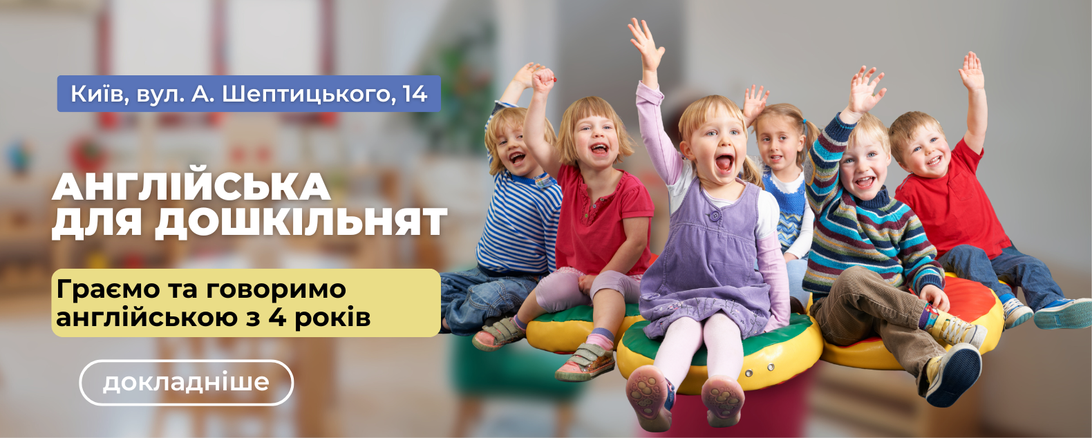 Ми пропонуємо курси англійської мови для дітей віком від 6 років, підлітків та дорослих. Групи формуються за віком та рівнем знань. Заняття проходять онлайн або очно у Києві (м. Лівобережна, вул. А. Шептицького, 14) та Львові (вул. І. Франка, 68). Школи мають укриття.